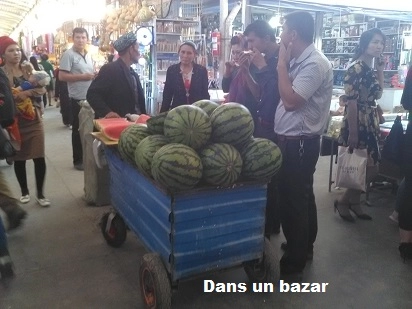 Quant aux femmes, la plupart portent un foulard noué autour de la tête (une coiffe), plus rarement un foulard noué autour du cou et on en voit nu-têtes. Il faut préciser que la partie du Xinjiang où nous nous trouvions, et principalement la ville de Kashgar subissait une température de 30 degrés ou plus et qu’elle est balayée par un vent venu des plaines pelées qui empoussière tout : rues, arbres, fleurs, voitures, vitrines, habits et… cheveux.