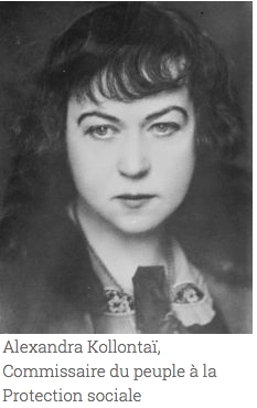 Mais le gouvernement soviétique, avec en son sein la première femme ministre : Alexandra Kollontai (Commissaire du peuple à la protection sociale), alla beaucoup plus loin dans les droits accordés à la gente féminine : droit de vote, droit au divorce, lutte contre l’analphabétisme qui touchait alors 80% des femmes. Le 16 septembre 1918 est crée le code de la famille, et le 18 novembre 1920 le décret qui autorise l’avortement est promulgué. Les congés maternités, ainsi que l’égalité salariale entre hommes et femmes sont également décrétés.