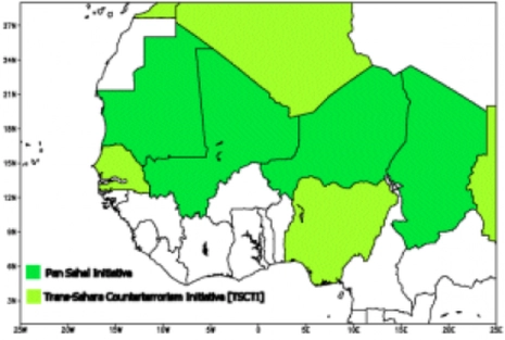 En 2005 la PSI s’élargit et se transforme en TRANS SAHARA COUTERTERRORISM INITIATIVE (TSCTI). Quatre nouveaux pays entrent dans son champ d’intervention : Algérie, Sénégal, Nigeria et Soudan. Trois de ces pays sont des pays pétroliers et Le Nigéria est le premier pétrolier d’Afrique et un très gros exportateur vers les Etats-Unis (15% des importations étasuniennes). L’activité terroriste islamique se poursuit sous diverses appellations dans la zone AQMI au Maghreb, BORO HAKAM au Nigeria justifiant la multiplication des manoeuvres interarmées, la fourniture de matériel anti-terroriste et la présence permanente de forces spéciales et d’instructeurs.