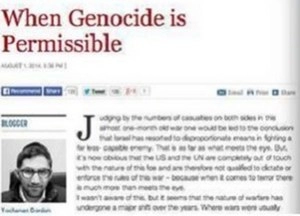 Le Premier ministre Benjamin Netanyahu a clairement déclaré, dès le déclenchement de cette incursion, que son objectif est la restauration d’une tranquillité durable pour les citoyens d’Israël. Nous avons déjà établi que c’est la responsabilité de tout gouvernement que d’assurer la paix et la sécurité de son peuple. Si les leaders politiques et les experts militaires déterminent que la seule façon d’atteindre l’objectif de tranquillité soutenue est à travers le génocide, est-il permis (…)