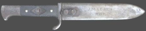 Quand les tortionnaires repartent, ils oublient un poignard. C’est un couteau des Jeunesses hitlériennes, fabriqué dans la Ruhr dans les années 1930. Sur le fourreau, on lit : J.M. Le Pen, 1er REP. L’un des enfants le trouve et le cache. Il se taira quand les bourreaux reviennent pour le retrouver. Le poignard deviendra une pièce à conviction dans un procès intenté au Monde (et perdu) par Le Pen pour « diffamation ».