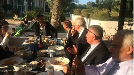 Bernard-Henri Levy avec son ami libyen Waheed Burshan, troisième en partant de la droite, à l’hôtel "La Résidence" à Gammarth, dans la banlieue chic de Tunis.