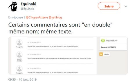 - 3.152 commentaires seulement pour 30.933 donateurs (NB : les robots ne laissent pas de commentaire) ; et même plusieurs commentaires répétés avec le même expéditeur :