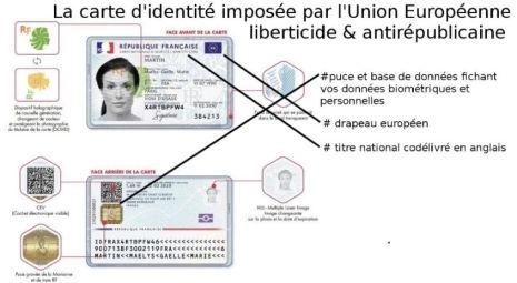 Cette carte d’identité n’a plus rien d’une carte nationale d’identité, document officiel de la République. Puisque faisant figurer l’emblème de l’Union Européenne qui faut il le rappeler n’a aucune valeur constitutionnelle ni officielle ! C’est que ce nouveau document imposé par le décret n°2021-279 traduit en réalité “le règlement (UE) 2019/1157 du Parlement européen et du Conseil du 20 juin 2019 relatif au renforcement de la sécurité des cartes d’identité des citoyens de l’Union et des documents de séjour délivrés aux citoyens de l’Union et aux membres de leur famille exerçant leur droit à la libre circulation “. En clair c’est l’Union Européenne qui décide de la forme prise par les documents d’identité des citoyens français ! Et c’est également cette même Union Européenne qui impose le passage à un format biométrique tout à fait liberticide. Une puce stockera vos photo, les empreintes digitales (y compris pour les enfants de plus de 12 ans !), date et lieu de naissance, sexe, taille, adresse. Des données également placées dans une base de données, le TES. Un nouvelle outil pour la surveillance policière de masse. La CNIL a d’ailleurs rendu un avis très réservé : données biométriques trop accessible, conservation durant 15 ans, interconnexion des fichiers et chiffrement trop faible... un vrai réquisitoire !