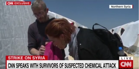 Ce rapport filmé montre la journaliste, correspondante de CNN, plonger son nez dans un cartable d’écolier, en plein territoire turc, à des centaines de kilomètres de Douma et une semaine après l’incident présumé. Elle renifle et son odorat s’active pour lui faire dire sur les écrans de CNN, en dépit du décalage d’une semaine et à des centaines de kilomètres du lieu de la présumée attaque chimique, sans signes visibles d’un quelconque malaise, qu’elle a senti la puanteur bizarre de produits chimiques. Elle a dit « stinky », en anglais.