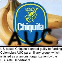 Si José Arcadio Secondo avait été syndicaliste cueilleur de bananes ces années-ci et non pas à Macondo il y a trois-quarts de siècle, il aurait eu encore mois de probabilité de mourir de vieillesse. Les bananes, à l’époque comme aujourd’hui, continuent à ruisseler de sang. C’est ce que confirme la sentence du tribunal de Washington, qui a condamné Chiquita Brands (des fameuses « Chiquita 10 e lode ! » ? NDT), à payer une amende de 25 millions de dollars pour avoir financé, de 1997 à 2004, à travers sa filiale Banadex, les Autodefensas Unidas de Colombia (Auc). L’histoire, ainsi, se répète, bien qu’on ait changé le nom de la multinationale (qui autrefois s’appelait United Fruit) et ses méthodes de répression, réalisée dans les années 20 par les massacres de l’armée (comme le raconte Gabriel Garcia Marquez dans Cent ans de solitude), et maintenant avec les mini-Uzi (des armes dont vous verrez la photo en allant sur un site très instructif à ce sujet, lien en fin de texte, NDT) des sicaires paramilitaires. Les paiements des Auc furent approuvés « pour garantir en bonne foi la sécurité de nos employés », a répondu pour sa défense le président de Chiquita Brands, depuis son siège de Cincinnati, dans l’Ohio. « L’amende à une entreprise, coupable d’avoir payé un groupe illégal ; est un signal magnifique, commente le ministre de la défense colombien, Juan Manuel Santos. Mais bien qu’elle ait fait grand bruit, la sentence du tribunal est presque une farce, pour ce qu’elle décrète et ce qu’elle omet.