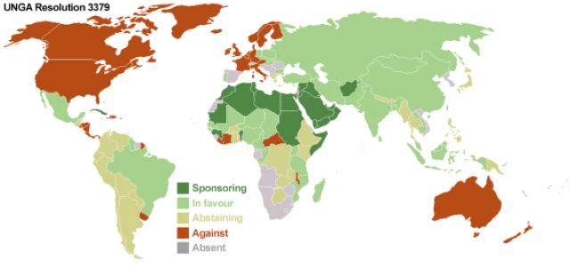 La solution consiste donc en ce qu’un pays ou un groupe de pays, du sud nécessairement vu les circonstances, prenne l’initiative d’une nouvelle résolution qui annulerait celle de 1991, réactiverait simultanément et automatiquement celle de 1975, et mettrait fin définitivement à la confusion scandaleuse entre antisionisme et antisémitisme que veut imposer par tous les moyens l’empire sioniste dans le monde entier après l’avoir imposée dans les pays occidentaux, jusque dans leurs législations. Certes, les résolutions de l’Assemblée Générale ne sont pas contraignantes, mais elles exercent une influence indirecte importante sur le droit interne des Etats membres, elles sont considérées comme une affirmation d’un droit flexible (soft law) en ce qu’elles expriment la volonté politique et la conscience de la communauté internationale, surtout lorsqu’elles sont adoptées à une large majorité ; elles contribuent en outre à l’élaboration du droit international en créant des normes et des précédents, les Etats décident souvent de les intégrer à leurs législations nationales pour se conformer aux principes universels, à la volonté de la communauté internationale, et à l’évolution du droit international, (le plus ancien exemple est la résolution portant déclaration universelle des Droits de l’homme, ou encore celle consacrant les Droits de l’enfant) ; enfin elles confèrent également une légitimité aux actions des Etats dans la mise en œuvre de leurs politiques, surtout dans le domaine des Droits de l’homme et des problèmes de racisme et discriminations.
