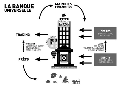 Ce même principe s’applique à une banque, mais avec des types d’actifs et de passifs bien entendu très différents.