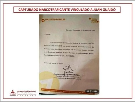 En janvier 2016, alors que l’opposition vénézuélienne vient de remporter les élections législatives, le parti Voluntad Popular désigne le narcotrafiquant Biaggio Garofalo en charge de la coordination du parti dans la ville d’Anaco, dans l’État d’Anzoátegui. La personne responsable de cette nomination est un jeune député récemment élu, et secrétaire d’organisation de Voluntad Popular : Juan Guaido.