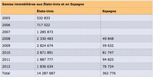 Les conséquences directes des méfaits des banques sont particulièrement graves : 14 millions de familles aux États-Unis ont été expulsées de leur logement entre 2007 et 2013 (voir tableau ci-dessous), parmi elles, il est avéré qu’au moins 495 000 familles l’ont été de manière parfaitement illégale [6], des millions de personnes ont perdu leur emploi, une partie d’entre elles sont tombées sous le seuil de pauvreté, le taux de suicides a augmenté parmi les personnes affectées, la dette publique a explosé et les fonds de pensions des pays développés ont perdu près de 5 400 milliards de dollars [7].