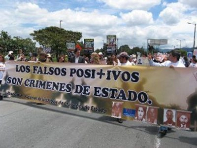 « Les effectifs militaires sont impliqués dans l’assassinat de jeunes qui ont été enlevés et conduits dans une région du nord-est du pays où ils furent exécutés et présentés par les militaires comme des « guérilléros » abattus lors d’un affrontement. Cette manière d’agir est connue en Colombie comme de « faux-positifs ».