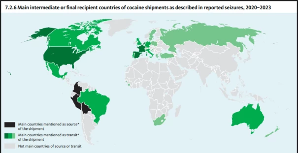 Raison en panne, en effet. Les accusateurs n’ont même pas vérifié les données des organisations compétentes dans le domaine. Ainsi, l’Office des Nations unies contre la drogue et le crime (ONUDC), dans le point 7.3.3 de son rapport 2025 concernant les « …principaux pays identifiés comme sources et destinataires finaux ou intermédiaires des expéditions de cocaïne, d’après les saisies signalées, 2020-2023 » non seulement ne mentionne pas le Venezuela parmi ces pays mais le signale comme un pays « non considéré parmi principaux pays sources ou de transit ». [16]