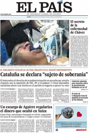 "Le secret de la maladie de Chavez", c’est le titre choc de la première édition d’El Pais...