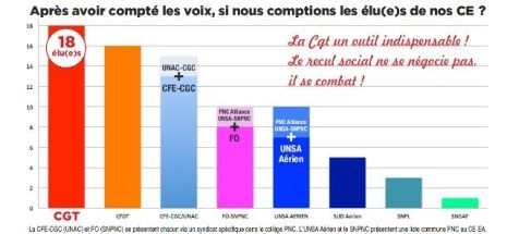 Quoiqu’en dise nos chers médias, la CGT reste première organisation à Air France dans un paysage syndical qui ne change guère par ailleurs comme le montre le tableau ci-dessus.