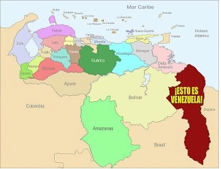En rouge, la Guyane Esequibo, une région historique du Venezuela