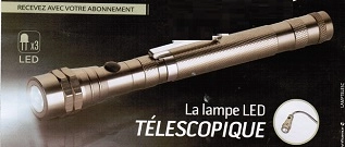 - Une lampe LED télescopique aimanté mesurant de 17 cm (fermée) à 46 cm, très pratique pour un éclairage de précision dans les endroits inaccessibles,