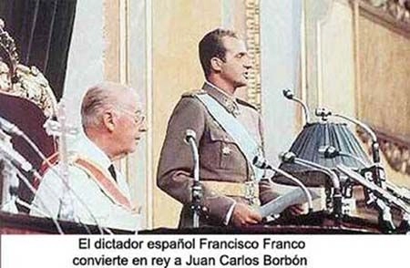(Le dictateur espagnol Francisco Franco transforme en roi Juan Carlos Bourbon.)