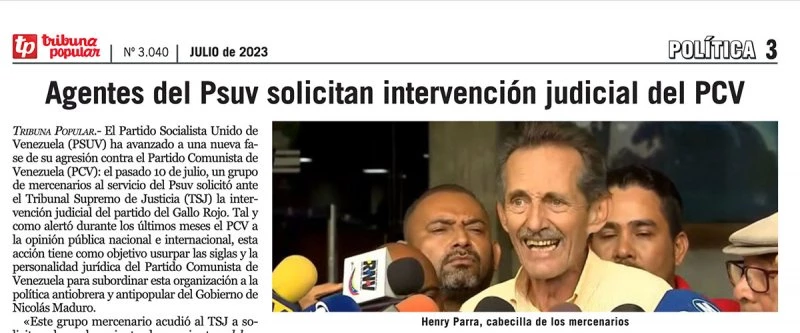Ces dures accusations semblent confirmées quand, le 11 août 2023, le Tribunal suprême de justice (TSJ) annonce la destitution de la direction du PCV, jugée « illégitime », et son remplacement par une direction ad hoc, chargée de « rétablir les processus démocratiques au sein du parti ». Un mois auparavant, Figuera avait accusé « un groupe de mercenaires au service du PSUV » – « une poignée de figures apparemment inconnues déclarant être les bases du PCV » précisa Tribuna Popular, l’organe du parti – de solliciter cette spoliation.