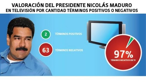 Pour leur part les télévisions Venevisión, Televen et Globovisión n’ont consacré que 33 minutes de couverture à Nicolás Maduro et ont employé 97% de termes négatifs contre lui.