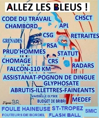 Balancez toutes les grenades que vous pouvez, même celles que les lois internationales interdisent d’utiliser, mitraillez avec vos flash balls équipés de viseurs holographiques qui permettent de ne pas rater l’œil ou la bouche, acharnez-vous en meute sur le malheureux (ne pas tenir compte du sexe, de l’âge ou de la totale innocence) qui passe à votre portée. « Ah les braves sicaires ! », s’extasie Castaner en regrettant de ne pouvoir les décorer tous de la Légion d’honneur, ce hochet galvaudé, indistinctement attribué à des citoyens méritants et à des crapules qui devraient être en prison (trois bols de fayots par jour et c’est tout. A la japonaise !).