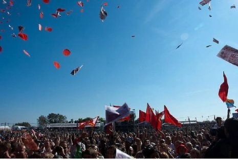 Chers amis, chers camarades, une fois n’est pas coutume, mais pour conclure ce discours je voudrais vous parler d’amour et de bonheur. Aujourd’hui les seules fois où l’on entend parler d’amour en politique c’est à l’université d’été du MEDEF… ! Alors que c’est ici à la fête de l’Humanité, là où le peuple de gauche se réunit, oui c’est ici qu’il convient de parler d’amour.