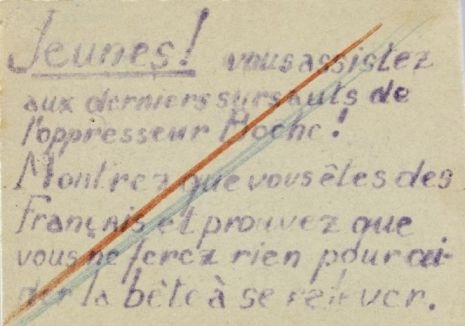 « Jeunes ! Vous assistez aux derniers sursauts de l’oppresseur Boche !
