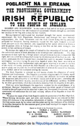 Le 24 avril 1916, le lundi de Pâques, alors que depuis près de deux ans l’Europe était plongée dans une guerre cruelle et fratricide, une poignée de travailleurs révolutionnaires et de combattants nationalistes unis se soulevaient dans la capitale irlandaise, occupant quelques bâtiments publics dont la Poste centrale d’où les chefs des insurgés allaient proclamer une République d’Irlande indépendante de la couronne britannique. Les insurgés tinrent tête toute une semaine à l’armée et à la marine britanniques.