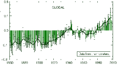- la température moyenne à la surface de la terre a augmenté de 0,6° (+/-0,2°) au 20e siècle ;