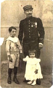 Pierre Mazou, père de François. Le garçon le plus grand c’est Jean, le frére ainé et le bebé est François, en 1915, habillé en petite fille comme le voulait la coutume. Les deux frères feront la Guerre d’Espagne et la Resistance