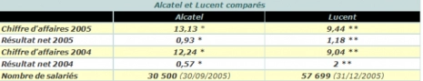 Divisez le chiffre d’affaire par le nombre de salarié cela donne le résultat suivant Chaque salarié d’Alcatel amène 401.000 euros d’activité quand un salarié de Luccent n’amène que 156.000 dollars, sachant qu’à l’époque la conversion dollar euro, est largement à l’avantage de l’euro. Si l’on prend le résultat net par salarié, Alcatel a une rentabilité financière de 3.049 € quand le salarié de Luccent ramène 2.034 $, et il suffit de faire la division pour s’en rendre compte. Le salarié « compétitif », est donc comptablement français, pas américain… C’est donc bien Alcatel qui sauve Luccent. Au-delà des chiffres bruts, il y a ces commentaires : « De son côté, Per Lindberg, analyste chez le courtier allemand Dresdner Kleinwort, assène de violentes attaques contre l’opération. Un des premiers points noirs du projet concerne les fonds de retraite de Lucent, déficitaires de 4 à 5 milliards de dollars selon lui » [5]. L’opération n’est donc pas industrielle, ni même économique, mais juste financière pour les dividendes, pour les seuls actionnaires, car ce qui compte c’est le cours de bourse, pas l’entreprise, quant aux salariés….