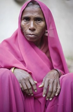 Je n’ai pas de travail, pas d’argent, et je compte sur mon fils pour ramener de quoi manger chaque soir, pour qu’on puisse au moins avoir un repas par jour. Sampat Devi est venue à mon secours. Elle est comme le messie, elle se soucie toujours des pauvres. Elle s’est battue pour moi et elle a réussi à me faire obtenir la carte rouge (carte qui prouve qu’on vit en dessous du seuil de pauvreté). Ma famille est très pauvre, et cette carte me donne accès au riz et au blé à bas prix des centres de distribution publics. J’ai rejoint le gang il y a six mois et depuis, j’ai confiance en moi, je me sens beaucoup plus forte. Quelquefois, nous sommes parties en mission avec le Gulabi Gang, et le Gouvernement nous a menacées. Le fait d’être en groupe nous donne une telle confiance en nous que nous sommes prêtes à combattre les injustices. Quand j’ai rejoint le gang, Sampat Devi nous a présenté les objectifs du groupe. On a appris à se battre au lathi. C’est, à la base, une technique défensive. Nous ne sommes pas un groupe violent, mais si vous nous défiez, nous pouvons le devenir. Nous utilisons d’abord des méthodes pacifiques, mais si elles ne fonctionnent pas, nous nous servons de nos lathi. Le gang a changé ma vie. Je veux y rester jusqu’à ma mort.