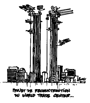 Il y aura bien sûr des cris d’indignation et des messages de condoléances. On applaudira les « réponses fermes » lorsqu’elles se produiront (va-t-on détruire une usine pharmaceutique au Soudan ou bombarder la population civile d’un pays arabe ?). On trouvera quantités d’intellectuels pour produire de savantes analyses menant à de grossiers amalgames liant ces attentats à tout ce qui leur déplait dans le monde : Saddam Hussein, Kadhafi, les pacifistes et anti-impérialistes occidentaux, le mouvement de libération palestinien et, pourquoi pas, la Chine, la Russie ou la Corée. On construira plus de réseaux d’espionage. On contrôlera mieux les citoyens. On expliquera que cette barbarie nous est étrangère : en effet, nous préférons bombarder de haut et tuer à petit feu au moyen d’embargos. Mais tout cela ne résoudra aucun problème de fond. Ce n’est pas à la révolte qu’il faut s’attaquer, mais à la misère qui engendre cette révolte.