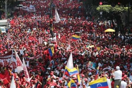 Mardi 18 février à Caracas : mobilisation pacifique d´étudiants et de travailleurs pétroliers pour défendre le verdict des urnes et la poursuite du programme socialiste. A cette occasion, Nicolas Maduro (de dos) a signé le nouveau contrat collectif en faveur des travailleurs de ce secteur (dont les États-Unis cherchent précisément à reprendre le contrôle via la tentative de coup d’État).013__YM_1612_PLe 15 février, Maduro (lui-même ex-syndicaliste) a participé aux travaux du sommet du Mercosur ouvrier organisé à Caracas en présence de 31 dirigeants syndicaux latino-américains. Il a annoncé la mise á disposition par son gouvernement d‘un fonds spécial de 1000 millions de dollars (créé par Hugo Chavez) pour soutenir au sein du MERCOSUR la récupération d’entreprises, l’intégration d’un modèle productif qui dépasse le capitalisme ainsi que la création d’un centre de formation syndicale, dont le siège sera installé à Caracas.