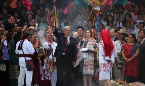 Lors de la passation de pouvoir [le 1er décembre 2018, NDT], AMLO a clairement indiqué que son pari politique visait le respect de l’autodétermination des peuples. Cela a permis la présence de 20 dirigeants de tous les horizons politiques à sa cérémonie d’investiture, d’Evo Morales [Bolivie] et Nicolás Maduro [Venezuela] -en plus de l’invitation de l’ancienne présidente argentine Cristina Fernández [Argentine]- à des figures réactionnaires telles que Juan Orlando Hernández [Honduras] et Jimmy Morales [Guatemala], ainsi que Lenin Moreno [Equateur], Iván Duque [Colombie] et Martín Vizcarra [Pérou]. Durant cet événement, protocoles et traditions ont été rompus.
