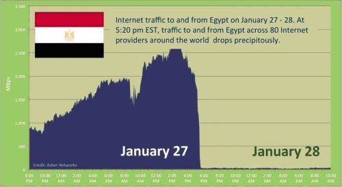 Ce vendredi 28 janvier 2011, au 4ème jour de protestation |2| , le pays s’enflamme : les manifestations s’étendent dans tout le pays, au Caire, à Alexandrie comme à Suez pour exiger le départ du dictateur Moubarak au pouvoir depuis 30 ans. Empruntant la voie révolutionnaire ouverte par les masses populaires et la jeunesse en Tunisie, rien ne peut plus arrêter le processus insurrectionnel en marche. Emportée par la lame de fond révolutionnaire en cours en Tunisie, celle-là même qui vient de chasser Ben Ali du pouvoir, le 14 janvier dernier, la rue égyptienne s’embrase. à‚gé de 82 ans, le plus proche allié arabe des États-Unis, après quelques instants d’hésitations, ordonne à sa police de réprimer durement les manifestations espérant ainsi tuer dans l’oeuf la révolution qui menace d’emporter le régime corrompu. Dans le même temps, Internet est totalement censuré , et les communications téléphoniques via le réseau Gsm sont très fortement limitées ; le géant britannique des télécommunications Vodafone confirme que les compagnies de téléphonie mobile se sont soumises à l’ordre de couper toutes communications. Il est frappant de voir comment, dès qu’elles agissent au service de la révolution, les nouvelles technologies de communication, tel Internet ou la téléphonie mobile, peuvent être totalement et immédiatement coupées à l’échelle d’une nation entière.