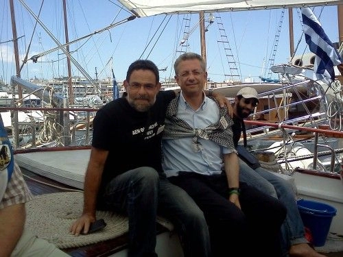 J’ai débarqué le 2 juillet, pour rejoindre le reste de l’équipe à Athènes avec un petit pincement au coeur comme si la moitié de moi-même était restée sur ce bateau avec le reste de l’équipage. Avant de quitter le « Dignité », j’avais accueilli à bord Olivier Besancenot et Julien Rivoire du Nouveau Parti anticapitaliste (NPA) et Nicole Kiil-Nielsen, députée européenne Europe-Ecologie, la syndicaliste Annick Coupé, porte-parole de Solidaires ainsi que quatre militants pro-palestiniens : Jacqueline Le Corre, médecin, représentant le collectif 14 et membre de l’association France-Palestine Solidarité, Oussama Muftah, membre du Collectif 59 Palestine, Nabil Ennasri, président du Collectif des musulmans de France.