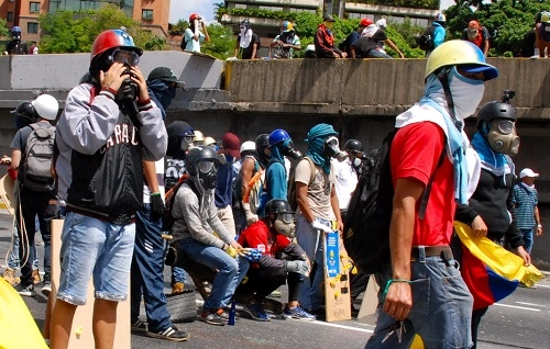 Quelques poignées de délinquants manipulés (et pour certains payés) peuvent facilement provoquer des désastres irréparables. Depuis maintenant trois mois, chaque manifestation est suivie d’une phase insurrectionnelle au cours de laquelle des groupes de choc fascisants sèment le chaos, équipés de casques et de masques à gaz, utilisant cocktails Molotov, explosifs, armes létales et mortiers artisanaux [1]. Des victimes tombent dans tous les camps (six policiers et gardes nationaux ont été tués), et même souvent n’appartenant à aucun camp : civils assassinés parce qu’ils tentent de dégager ou contourner une barricade, jeunes hommes brûlés vif (deux morts et deux blessés dans un état très grave à Caracas et Barquisimeto) parce que les « opposants pacifiques » les ont pris pour des « chavistes ». Personne n’aurait donc mis Paranagua au courant ?