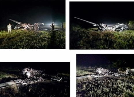 Parmi les restes de l’avion bimoteur ont été retrouvés les corps carbonisés des deux membres d’équipage, qui ont été emmenés à l’Institut national des sciences médico-légales dans le département guatémaltèque de Petén. Voici une photographie de ce qui restait du corps de l’un d’entre eux.