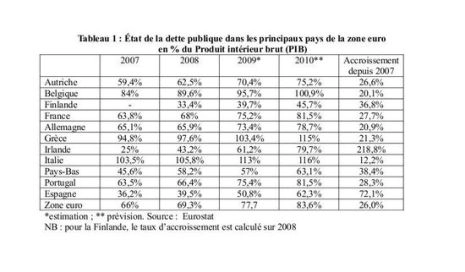 », la dette publique. Aujourd’hui, la Grèce ; demain, le Portugal, l’Espagne, l’Italie, l’Irlande. Après-demain, la Belgique, la France... La zone euro se trouve complètement éclatée et révèle son véritable visage : c’est un système construit pour les économies les plus riches sur le dos des plus pauvres.
