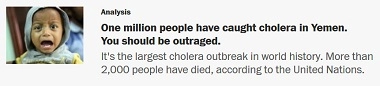 Juste à temps pour Noël, le Washington Post déplore l’épidémie de choléra au Yémen causée par la guerre américano-saoudienne : Indignez-vous : un million de personnes ont le choléra au Yémen.
