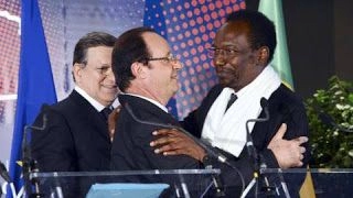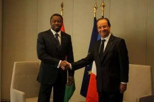Enfant de la République Ali Bongo, le chemin de la longévité au pouvoir est par ici. François Hollande te l’indique, comme le montre la photo ci-dessous. Toi qui, comme ton feu père, finance la vie politique française de la Gauche à la Droite, tu seras toujours le bienvenu dans la maison de ton père ou de ta mère, la République. La fidélité dans la servitude est une vertu rare. Pour cela, et qu’il pleuve ou qu’il neige au Gabon, reçois les hommages appuyés de la République.