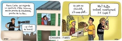 François Ruffin dirige l’excellent bimestriel Fakir. Il connaît personnellement les rigolos d’Article 11 et Guyet. Il a émis de sérieuses réserves sur leurs attaques contre LGS. Fakir est devenu la cible d’Ayatollah Guyet. François Ruffin dénonce la méthode : « Il suffit d’annoncer qu’Untel a débattu avec Machin qui a publié une préface pour Truc qui connaît bien Bidule, lui-même proche de l’extrême droite, pour qu’Untel soit compromis. Et il devient dès lors inutile d’écouter ses propos, de contester son point de vue avec des chiffres, des concepts, des comparaisons historiques. C’est à un terrorisme de la pensée – et des fréquentations – qu’aspirent ces inquisiteurs… » (11). Il précise : « Cette salade, touillée par une pasionaria de l’antifascisme, Ornella Guyet, m’a paru grotesque ».