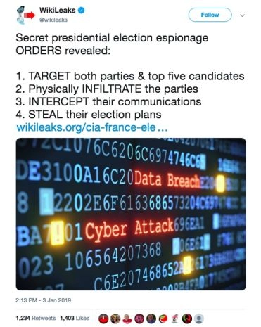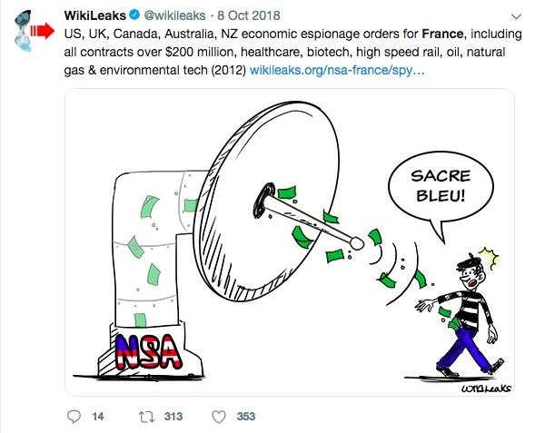 Un autre communiqué de WikiLeaks montre de plus que les Etats-Unis n’ont pas impliqué la Nouvelle-Zélande dans l’espionnage de la France uniquement pour des raisons politiques. Ils nous ordonnaient de voler des secrets commerciaux et économiques.