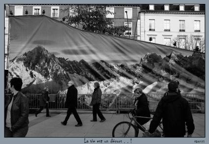 Sur cette place Clémenceau, qui pourrait être le cœur de la ville, des gamins, à défaut de ski, font de la luge. On leur a recréé des sommets et des pentes enneigées. L’été, c’est "la plage à Pau", l’hiver : "des luges à Pau". Les gosses laissés pour compte, et les autres, ont les yeux qui éclaboussent de bonheur. Derrière les barrières, les passants passent emmitouflés d’hiver. Les gamins, eux, montent et descendent, des rêves plein les mirettes.
