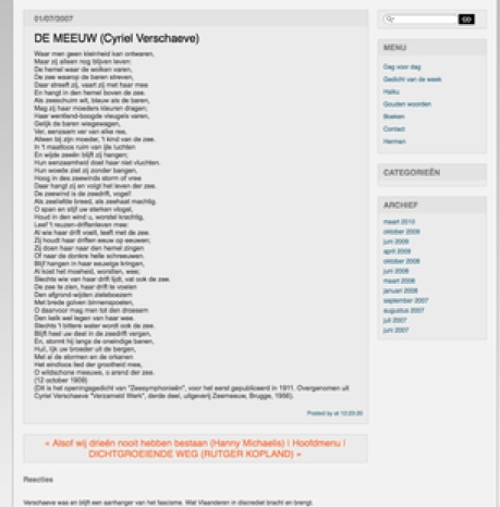 Faut-il paniquer ? Non (on ne parle pas encore de régime fasciste à proprement dit). Faut-il être vigilant ? Oui. Faut-il dénoncer l’utilisation de symbole comme ce poème ? Oui, parce que même si on peut se tromper ça a au moins le mérite de déclencher un débat qu’on fuit trop souvent (on en parle tout le temps ? Ah bon ? Qui en parle ?). Mais et surtout parce qu’on peut avoir raison et alors il est extrêmement important de le dire. Et oui ce poème est un symbole pour pas mal d’extrémiste flamand (et de milice) qui sont carrément du bord fasciste et ceux qui connaisse ces mouvements le savent et c’est précisément parce ce que sont auteur était plutôt de leur côté. Le texte en lui-même n’est pas politique, peut-être, sans doute enfaîte, mais l’utilisation qu’on en fait, l’est, elle, depuis longtemps. Il est toujours bon de le souligner...