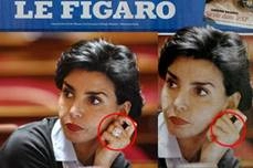 Sur les motivations du trucage, Mougeotte s’est expliqué devant la société des rédacteurs, en colère. « La photo choisie ne me convenait pas, car on ne voyait que la bague ». Faux ! Personnellement, le détail m’aurait échappé. Mougeotte : « J’ai demandé qu’on trouve une autre solution, au lieu de réclamer explicitement une autre photo ». Puis il a validé la nouvelle photo sans réaliser la disparition de l’objet à 15 600 euros serti de diamant. C’est donc bien lui qui a décidé que la bague qu’il avait vue (et trop vue) devait être cachée aux lecteurs du Figaro.