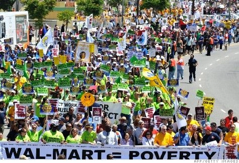 Près de Washington, un manifestant, Dan Hindman, interrogé sur CBS News, affirmait que « Walmart doit savoir que leur façon de nous traiter n’est pas juste ». Les revendications de l’association des employés protestataire de Walmart concernent au premier chef les salaires, avec l’établissement d’un salaire minimum de 13 dollars de l’heure (un employé de base chez Walmart gagne en moyenne 8,81 dollars par heure), une meilleure maîtrise par les travailleurs de leur temps de travail aujourd’hui soumis à l’arbitraire des directions des magasins (Wal-Mart considère que 28 heures par semaine constituent un poste à temps plein), une bonne assurance santé (les deux tiers des employés de Walmart ne peuvent souscrire le régime d’assurance-maladie de l’entreprise en raison du montant trop élevé des cotisations et des franchises) et... « le respect » alors que Walmart « tente de nous baillonner ».