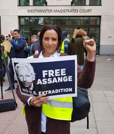 Lucia est venue de Barcelone pour soutenir Assange et a également protesté devant le tribunal de Southwark Crown Court, la veille, lors de son audience de condamnation à la prison. Elle a été l’une des rares personnes qui ne faisaient pas partie des médias grand public à avoir réussi à entrer dans la petite salle d’audience pour assister à l’audience.