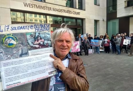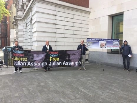 Larry Hyett a participé à une veillée de 24 heures à l’extérieur de la prison de Belmarsh, où Assange est incarcéré, qui a été menacée par le conseil municipal royal de Greenwich, dirigé par le Parti travailliste. Il a dit : "Nous avons l’appui des employés du conseil, mais la direction du conseil et la police ont émis un ASBO (Ordre de comportement antisocial) pour des choses mineures. Ils nous ont également mis en garde contre le fait que nous encourageons les autres à protester, comme si ces gens étaient des enfants et ne pouvaient pas prendre des décisions par eux-mêmes.