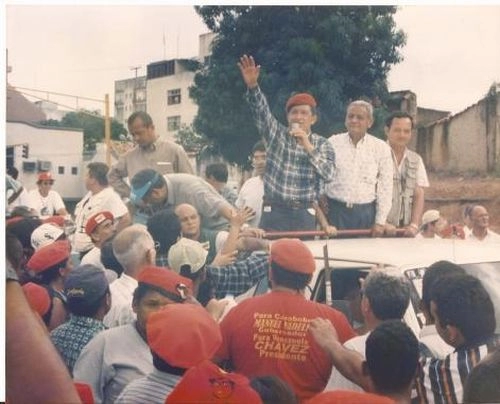 Manuel Vadell - En 1953. J’avais 17 ans, j’appartenais à la jeunesse d’un parti qui avait beaucoup promis au pays dans sa première étape : « Acción Democrática » (parti social-démocrate, NdT). Nos courants internes, à la gauche de AD, étaient emmenés par ce grand dirigeant que fut Domingo Alberto Rangel. Puis nous avons fondé le Mouvement de la Gauche Révolutionnaire (MIR). Ce fut le début d’un long travail qui a coûté beaucoup de martyrs au pays, non seulement sous la dictature de Pérez Jimenez mais par la suite sous la dictature des partis social-démocrate (AD) et démocrate-chrétien (COPEI). Il est frappant de voir que cette période civile fut beaucoup plus meurtrière que la dictature militaire. Tant de gens sacrifiés de manière absurde. En les assassinant, en les torturant, en les lançant depuis des avions. La lutte a continué : nous avons organisé tout le mouvement étudiant, celui de l’Université de Carabobo dans mon cas. J’ai subi 17 emprisonnements. Mes séjours en prison étaient brefs : j’étais président de la Fédération des Centres Universitaires et les rues se remplissaient pour exiger ma libération. Je dois dire avec fierté que j’ai inauguré la prison de Tocuyito ! (rire) M’y ont suivi 700 autres, venus de tous les coins du pays. Au milieu de tout cela, en plein appauvrissement généralisé du pays, Hugo Chavez tente une insurrection. Nous avions déjà des contacts avec lui. Lorsqu’il fut fait prisonnier après ce fameux 4 février 1992, les contacts se sont poursuivis à travers mes visites répétées à sa prison en compagnie du Dr. Giordani (actuel Ministre de la Planification NdT) ou de Domingo Alberto Rangel. Ici même, dans cette cave de la maison d’édition, nous nous sommes réunis après la libération de Chavez - Nicolas Maduro était parfois présent - pour structurer le MBR-200 civico-militaire, qui jusque là était une formation purement militaire. Chavez me nomma au sein de la direction avec - cela paraît incroyable - la responsabilité de la « sécurité et discipline ». C’est ainsi que nous nous sommes rapprochés.